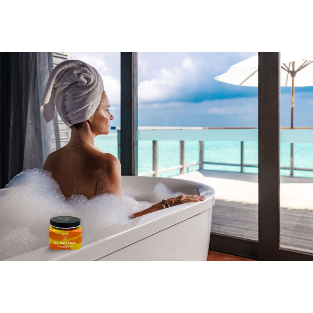 Some body scrubs may leave a glittery coat on the skin.