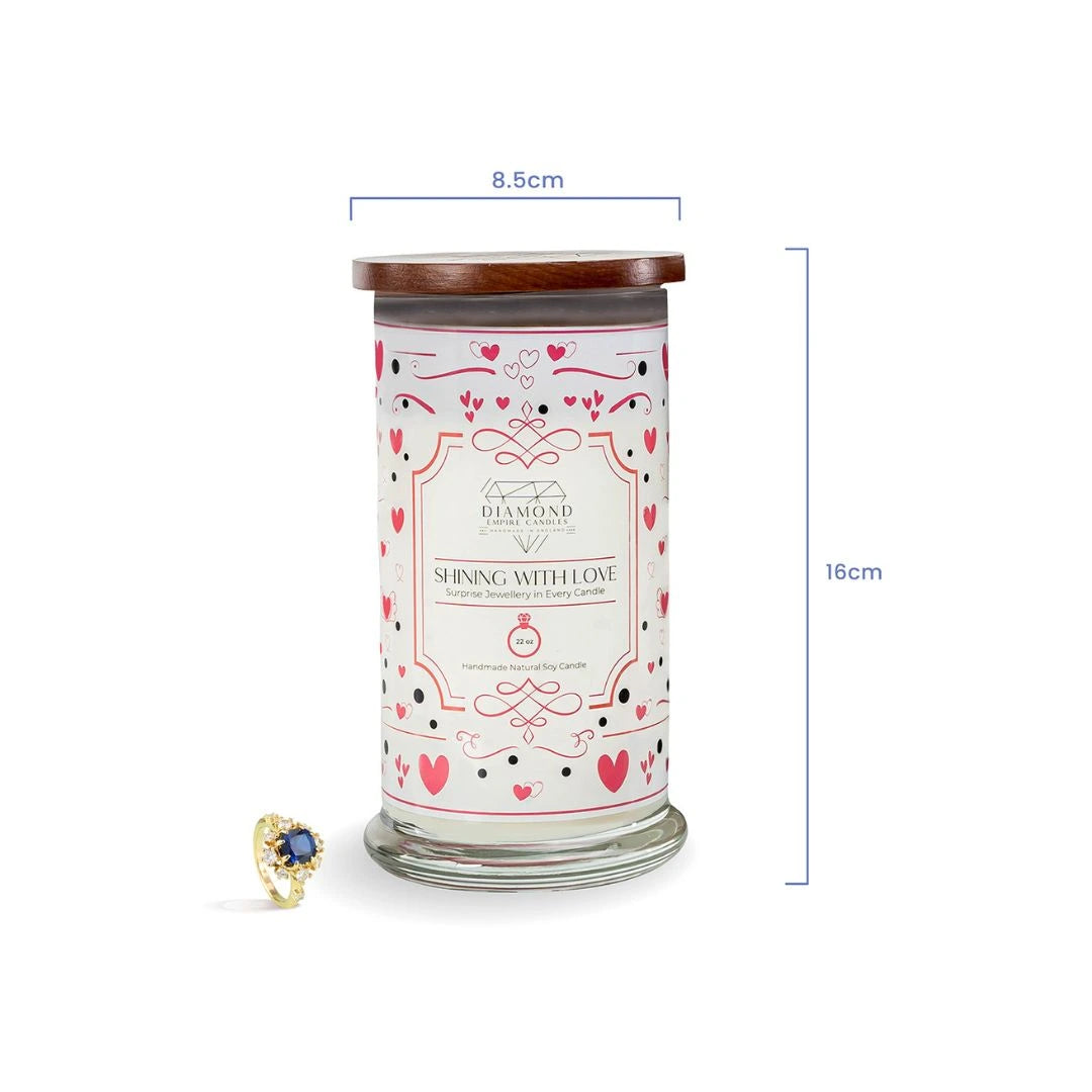 Envision lighting up the Shining With Love Candle, feeling the soothing warmth of the flickering flame, and being surrounded by the delightful scent of berries and citrus. As anticipation builds, await the unveiling of the hidden jewellery, adding an extra layer of sparkle and joy to your day.